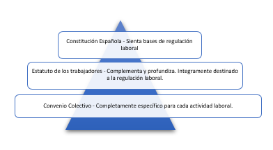 Constitución, Estatuto de los Trabajadores y Convenios colectivos, todos, de forma más genéricas o específica, regulan la relación laboral empresa – trabajador. Si bien la Constitución nos sienta las bases de esta regulación, el Estatuto de los trabajadores profundiza en ella y la complementa, finalmente es el convenio colectivo el que la vuelve mucho más específica y adapta a cada actividad.